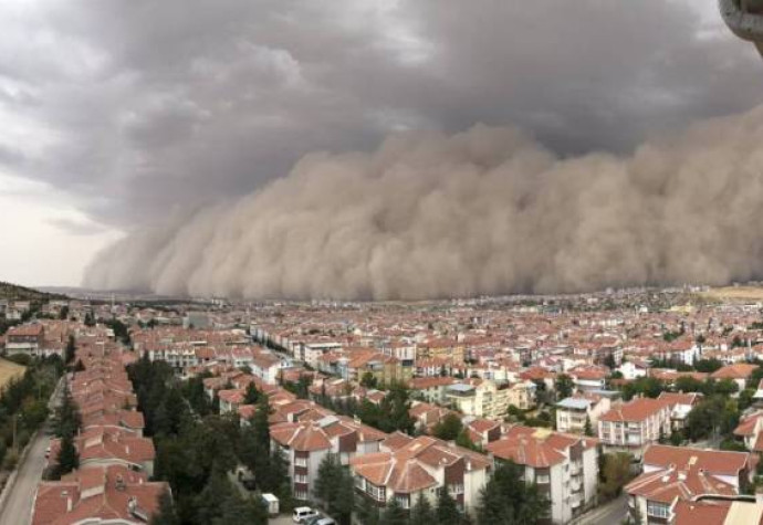 Ankarada qum fırtınası Polatlı və Haymana rayonlarını qaranlığa qərq edib. Toz buludu güclü küləklə müşayiət olunur. Türkiyə KİV-ləri xəbər verir ki, bir anda göy üzünü bürüyən toz buludu vətəndaşları təşvişə salıb.Qum fırtınası Ankaranın mərkəzində də yaşanıb. Güclü küləyin havada uçurduğu əşyalar altı nəfərin yaralanmasına səbəb olub. Binaların damları uçub, ağaclar aşıb. Bəzi yerlərdə elektrik və telefon xətləri sıradan çıxıb.