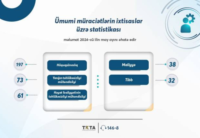 Ən çox müraciət olunan ixtisaslara gəlincə, hüquqşünaslıq üzrə 197, yanğın təhlükəsizliyi mühəndisliyi üzrə 73, həyat fəaliyyətinin təhlükəsizliyi mühəndisliyi üzrə 61, maliyyə üzrə 38, tibb üzrə 32 müraciətçi qeydə alınıb.