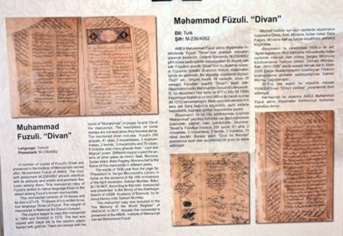 M.FÜZULİNİN ƏLYAZMASI “DÜNYA YADDAŞI” PROQRAMINDA