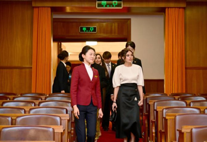 Aprelin 23-də Azərbaycan Respublikasının birinci xanımı Mehriban Əliyeva, qızı Leyla Əliyeva və digər ailə üzvləri Pekində Böyük Xalq Sarayı ilə tanış olublar.