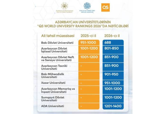 Ölkə tarixində ilk dəfə 6 universitetimiz “QS 2026 dünyanın ən yaxşı universitetlərinin reytinqi”ndə TOP 1000-ə daxil olub.