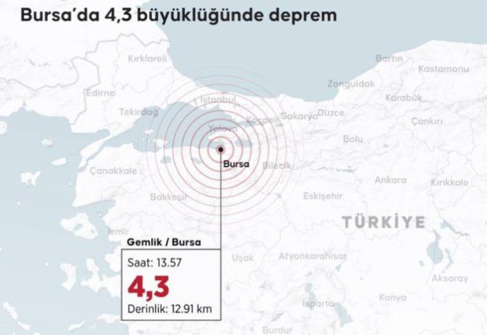 Türkiyənin Fövqəladə Halların İdarə Olunması Agentliyinin (AFAD) məlumatına əsasən, yeraltı təkanların episentri Bursanın Gemlik rayonudur.