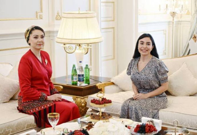 Leyla Əliyeva Türkmənistan Xalq Məsləhəti sədrinin qızı Oquldjaxan Atabayeva ilə görüşüb