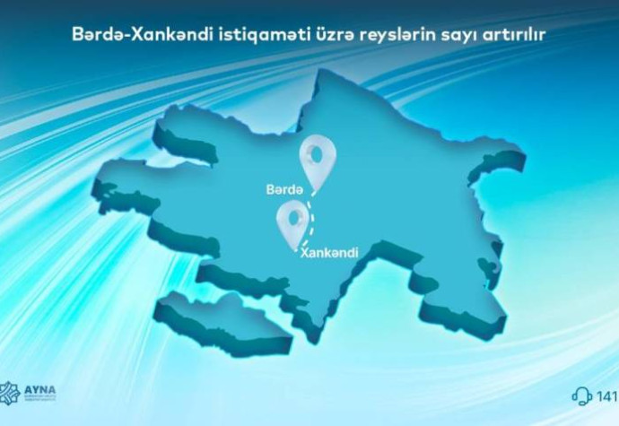 AYNA-dan bildirilib ki, avqustun 11-dən Bərdə-Xankəndi istiqaməti üzrə daha 3 reys fəaliyyətə başlayacaq. Bununla da bu istiqamətdə gün ərzində 6 reysin həyata keçirilməsi nəzərdə tutulub. Həmin reyslər üzrə aralıq məntəqə olaraq Xocalı şəhəri təyin edilib.