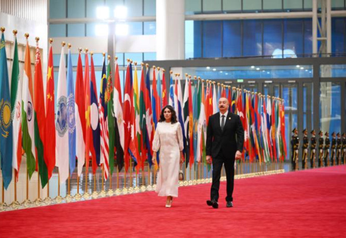 Prezident İlham Əliyev və Birinci xanım Mehriban Əliyeva Tiencində dövlət və hökumət başçılarının və xanımlarının şərəfinə ziyafətdə iştirak ediblər