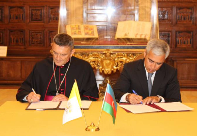 Memorandumu Müqəddəs Taxt-Tacda Azərbaycan Respublikası Prezidentinin köməkçisi, Heydər Əliyev Fondunun icraçı direktoru Anar Ələkbərov, Apostol Kitabxanası və Apostol Arxivinin rəhbəri arxiyepiskop Covanni Çezare Paqatzi imzalayıblar.