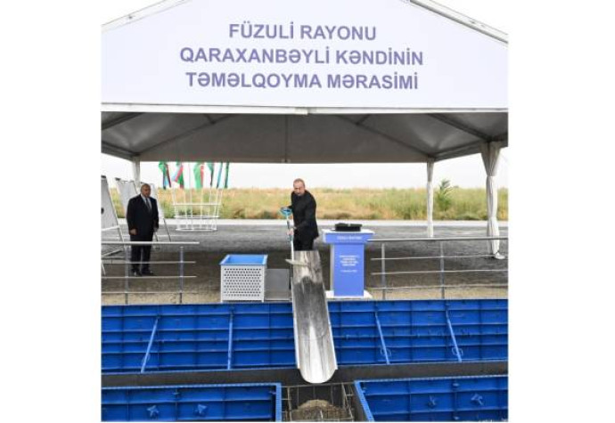 Prezident İlham Əliyev Füzuli rayonunun yeni salınacaq Qaraxanbəyli kəndinin təməlini qoyub