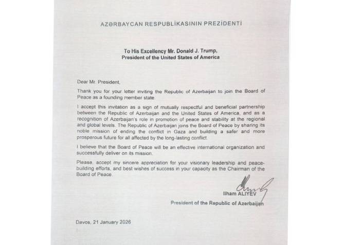 Bu sözlər Azərbaycan Respublikasının Prezidenti İlham Əliyevin Amerika Birləşmiş Ştatlarının Prezidenti Donald Trampa ünvanlandığı məktubda yer alıb.