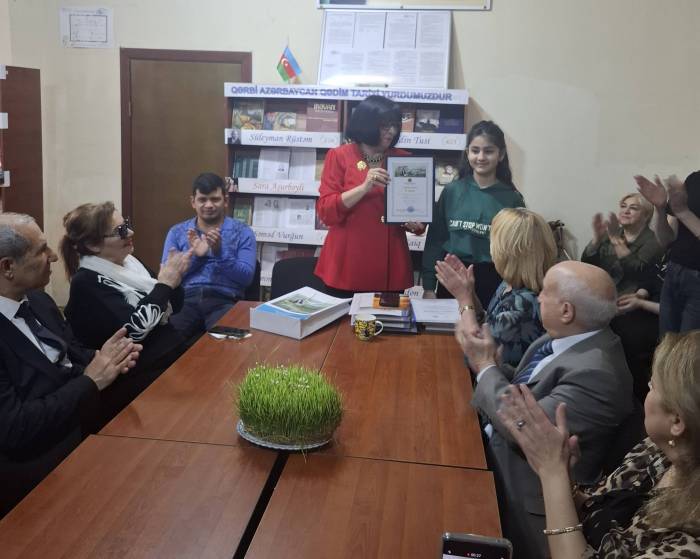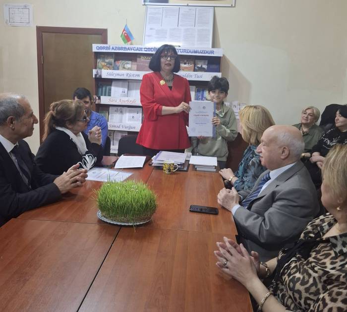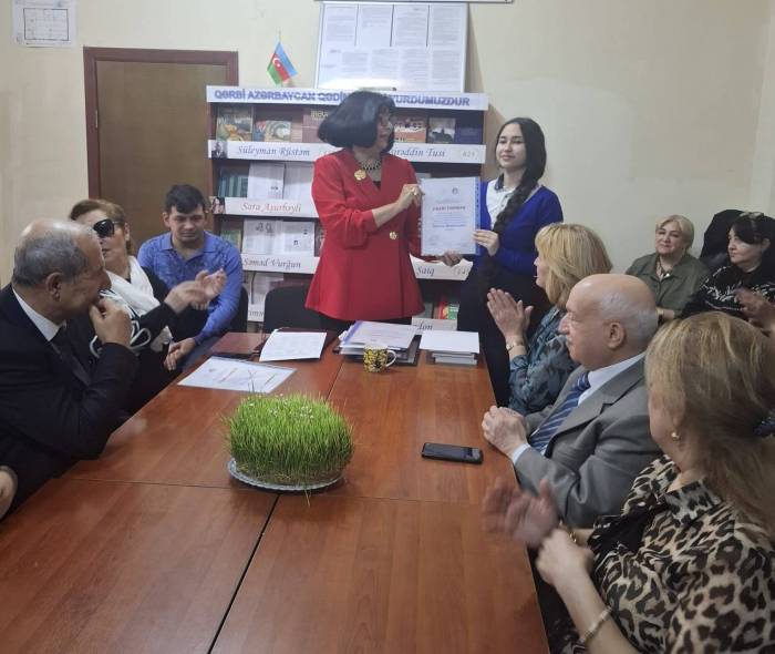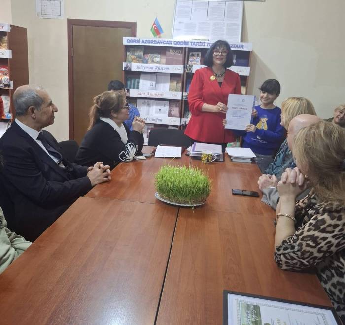 Ə.Vahid adına 1 №-li kitabxana filialının böyük kitabxanaçısı Dilşad Əliyevaya 60 illik yubileyi münasibəti ilə təşəkkürnamə təqdim olundu.