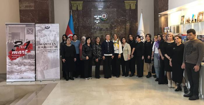 Ombudsman Aparatının əməkdaşı, Mərkəzi Kitabxananın Fəxri oxucusu, şair, publisist Azadə Novruzova kitabxananın əməkdaşlarına sərgi haqqında ətraflı məlumat verdi. O bildirdi ki, Mart hadisələri 1998-ci ilin martında Ulu Öndər Heydər Əliyev tərəfindən Azərbaycanlıların soyqırım günü kimi elan edilmişdir.
