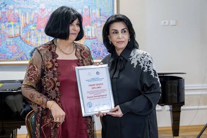 Tədbirin aparıcı Lətifə Məmmədova sevilən şair, bəstəkar Xanım İsmayılqızına Yasamal rayon MKS-inin M.Ş.Vazeh adına Mərkəzi Kitabxanasının Fəxri oxucu diplomunu və Bakı Şəhər Mədəniyyət Baş İdarəsinin Fəxri fərmanını təqdim etdi.