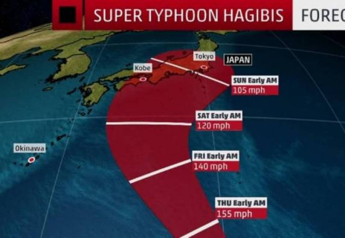 Qarşıdakı istirahət və bayram günlərində Yaponiyaya güclü “Hagibis” tufanı yaxınlaşır.