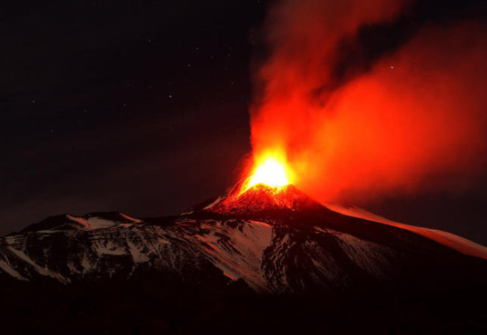 İtaliyanın Siciliya adasında Etna vulkanı püskürüb.