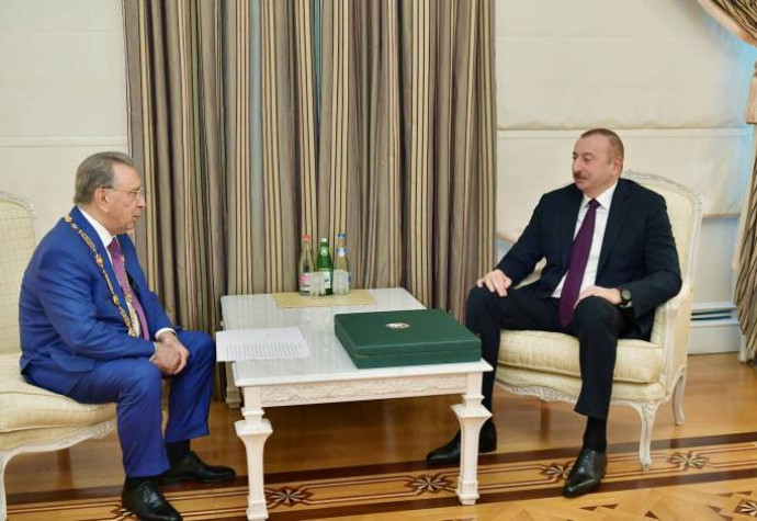 Xalq, dövlət qarşısında göstərdiyiniz xidmətlərə görə mən sizi bu gün dövlətimizin ən ali mükafatı olan “Heydər Əliyev” ordeni ilə təltif edirəm. Siz bilirsiniz ki, bu orden bir çox hallarda xarici dövlət və hökumət başçılarına verilir, hər kəsə yox. Bu orden doğrudan da xalqımızın, dövlətimizin dostlarına, ikitərəfli əlaqələrin inkişafında xüsusi rol oynamış dövlət və hökumət başçılarına, ziyalılara, incəsənət xadimlərinə verilir. Ona görə bu ordenin sizə verilməsi əlbəttə ki, xüsusi məna daşıyır, siz buna layiqsiniz. İlk növbədə, ona görə ki, uzun illər ərzində ulu öndər Heydər Əliyevə və dövlətə sədaqətlə xidmət etmisiniz. Ulu Öndərin adını daşıyan bu orden sizə bütün əsaslar olmaq şərtilə verilir. Əminəm ki, siz gələcək fəaliyyətinizdə də ümumi işimizə dəyərli töhfələr verəcəksiniz. İndi isə icazə verin bu ordeni sizə təqdim edim".