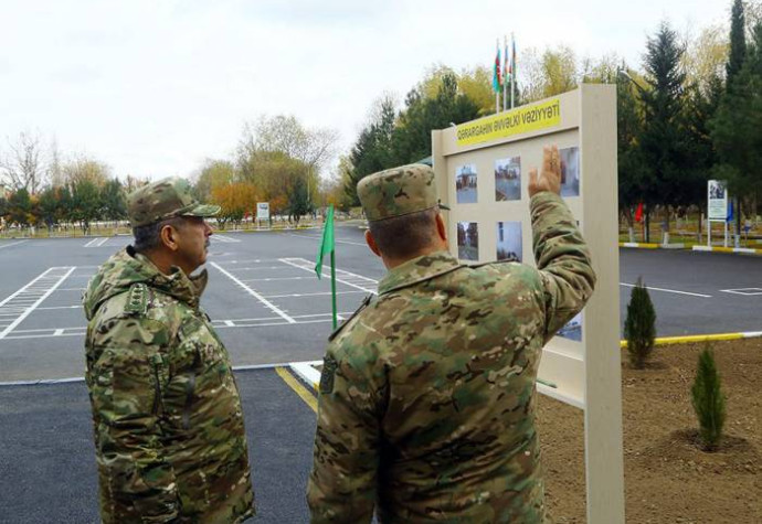Müdafiə Nazirliyindən verilən məlumata görə, rəhbərlik yeni istifadəyə verilən qərargah binası ilə də tanış olub. Qeyd olunub ki, qərargah mərkəzləşdirilmiş istilik sistemi, işıq, su, qaz və kommunikasiya xətləri ilə təchiz edilmiş inzibati və xidməti iş otaqları mebel avadanlıqları ilə də təmin olunub.
