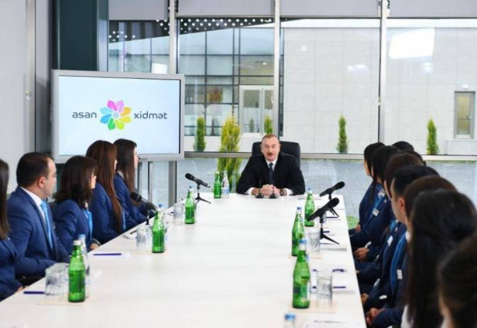 Dövlət başçısı qeyd edib: "Bilirsiniz, korrupsiya və rüşvətxorluq bizə qalan mirasdır. Ona görə bundan canımızı qurtarmaq üçün əlbəttə ki, həm maarifləndirmə işləri aparılmalıdır, düzgün siyasət aparılmalıdır və nəsillər dəyişməlidir. Mənim ümidim gənclərədir. Çünki gənclər yeni mühitdə, müstəqillik dövründə formalaşır. Əlbəttə, indi bizim dövrümüzdə də pozuntular, çatışmamazlıqlar var. Amma məsələ ondadır ki, biz bunlarla necə mübarizə aparırıq. Mən bir daha demək istəyirəm ki, biz bu mübarizədə təkcə inzibati, yaxud da ki, cəza tədbirləri ilə məqsədə müvəffəq ola bilmərik. Bütün bu tədbirlərlə yanaşı, institusional, sistem xarakterli islahatlar aparılmalıdır. İslahatların yeni dövrü keçən il prezident seçkilərindən sonra başlamışdır. Mən andiçmə mərasimindəki çıxışımda bizim əsas strateji inkişaf parametrlərini xalqın diqqətinə çatdırdım və hazırda biz ardıcıllıqla bu yolla gedirik. Baxın, Prezident Administrasiyası tamamilə yenidən formalaşıb, gənclər cəlb olunubdur. Nazirlər Kabineti yenidən formalaşıb, gənc nəsil cəlb olunur. İndi artıq növbədənkənar parlament seçkiləri elan olunub. Ümid edirəm ki, gənclər də bu seçkilərə çox fəal qoşulacaqlar. Çünki yeni simalar, yeni ideyalar, yeni yanaşma lazımdır. Eyni zamanda, mən onu da bildirməliyəm ki, biz nəsillər arasında ziddiyyətlərə yol verə bilmərik. Çünki bu, hər bir cəmiyyətdə var. Yaşlı nəsildən olan bir çoxları həmişə gənc nəsildən narazıdır. Ona görə biz bunu başa düşməliyik. Nəsillər arasındakı anlaşılmazlıq hər bir cəmiyyətdə var. Amma bizim cəmiyyət mühafizəkar cəmiyyətdir, konservativ cəmiyyətdir və ənənəvi dəyərlər üzərində qurulmuş cəmiyyətdir. Biz, əlbəttə, imkan verə bilmərik ki, bu təbii ziddiyyətlər hansısa böyük bir problemə çevrilsin. Ona görə, mən demişəm və mən gəncləri işə fəal cəlb etməyə başlayanda, gördüm ki, yaşlı nəslə qarşı elə bil hansısa bir kampaniya aparılır. Onu da mən dayandırdım. Çünki yaşlıların təcrübəsi, gənclərin müasirliyi və bunun vəhdəti bizə xeyir gətirəcək. Siz və “ASAN xidmət”də çalışanların mütləq əksəriyyəti cavanlardır. Amma yaslı nəslə xidmət edirsiniz. Çünki bu xidməti almaq üçün daha çox yaşlı nəslin nümayəndələri gəlirlər. Bax, bu nəzakətli davranış, bu mehribanlıq, xoş sözlər bizim cəmiyyətimizi də saflaşdırır və irəliyə aparır".