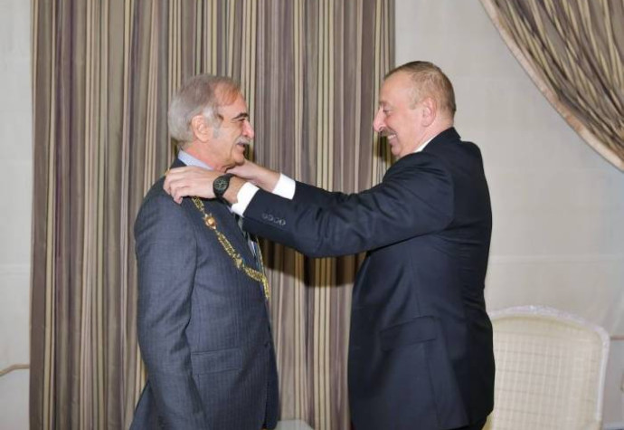Yaxşı bilirsiniz ki, ulu öndər Heydər Əliyev həmişə sizə, sizin fəaliyyətinizə böyük diqqət göstərirdi. Zərifə xanım da həmişə sizə diqqət göstərirdi. Siz bizim evimizdə dəfələrlə olmusunuz və biz bir-birimizi 40 ildən çoxdur ki, tanıyırıq. Siz bizim üçün - valideynlərim və mənim üçün həmişə çox doğma adam olmusunuz. Ona görə xüsusi qeyd etməliyəm ki, bu gün - yubiley ərəfəsində sizinlə görüşmək, sizi təbrik etmək mənim üçün çox xoşdur. Sizin fəaliyyətiniz dövlət tərəfindən yüksək qiymətləndirilib. Siz Azərbaycanın bir neçə mötəbər mükafatı ilə təltif olunmusunuz. Ancaq bu mükafatların arasında ən ali mükafat, ən ali orden “Heydər Əliyev” ordenidir. Mənim Sərəncamımla siz bu gün “Heydər Əliyev” ordeni ilə təltif olunursunuz. İcazə verin, bu ordeni sizə təqdim edim.