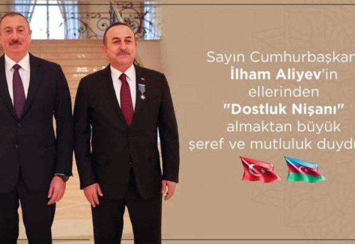 Türkiyənin Xarici İşlər naziri Mövlud Çavuşoğlu “Twitter” səhifəsində Azərbaycanın “Dostluq” ordeni ilə təltif olunması ilə bağlı paylaşım edib.