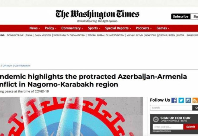 ABŞ-ın nüfuzlu və geniş auditoriyaya malik mətbu orqanı “Washington Times” qəzetində Azərbaycanın bu ölkədəki səfiri Elin Süleymanovun “Pandemiya Dağlıq Qarabağ regionunda həlli uzanan Ermənistan-Azərbaycan münaqişəsini işıqlandırır” (Pandemic highlights the protracted Azerbaijan-Armenia conflict in Nagorno-Karabakh region) sərlövhəli məqaləsi dərc edilib.