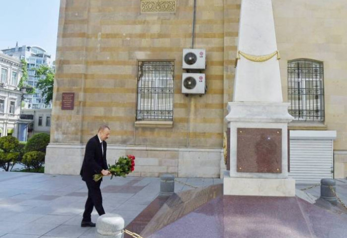 Prezident İlham Əliyev Azərbaycan Xalq Cümhuriyyətinin şərəfinə ucaldılmış abidəni ziyarət edib
