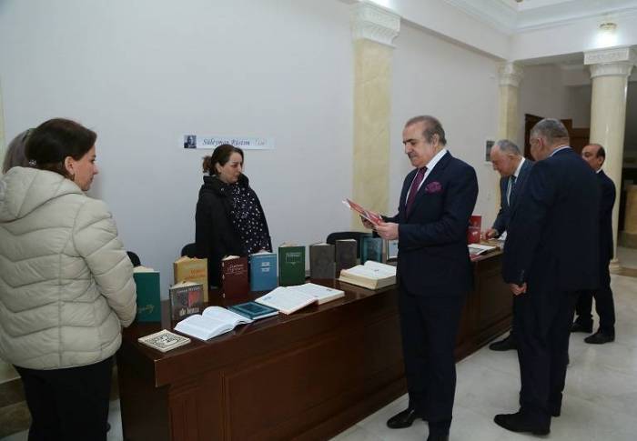Bundan başqa, sərgidə “XX əsr Azərbaycan yazıçıları” ensiklopedik məlumat kitabı, Xalq şairinin yaradıcılığı haqqında yazılan kitab və monoqrafiyalar, professor Həsən Quliyevin “Azərbaycan ədəbiyyatı” (tarixi oçerk) kitabları nümayiş olundu.