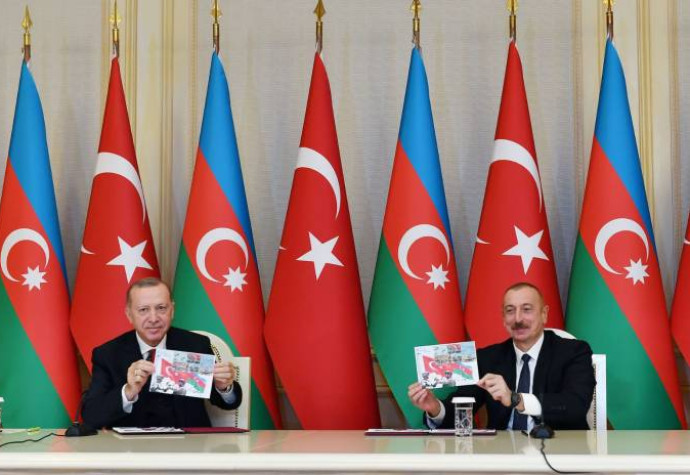 Azərbaycanın 44 günlük Vətən müharibəsindən sonra 2020-ci il dekabrın 10-da Bakının Azadlıq meydanında Vətən müharibəsində Qələbəyə həsr olunmuş Zəfər Paradı keçirildi. Daha sonra Prezident İlham Əliyevin və Prezident Rəcəb Tayyib Ərdoğanın iştirakı ilə Azərbaycan - Türkiyə arasında 5 mühüm sənədin imzalanması mərasimi oldu. Bunun ardınca Azərbaycan Prezidenti İlham Əliyev və Türkiyə Prezidenti Rəcəb Tayyib Ərdoğan mətbuata birgə bəyanatlarla çıxışlarında vurğuladılar ki, hər zaman hər iki dövlət bütün məsələlərdə bir yerdə olmuş, eyni mövqedən çıxış edərək bir-birinin yanında olmuşlar. Qarabağ məsələsinin hər zaman Türkiyə üçün də eyni dərəcədə ağrılı problem olduğunu bildirən Rəcəb Tayyib Ərdoğan Azərbaycanın sevinci, bizim sevincimizdir, qüruru bizim qürurumuzdur, dərdi, ağrısı, problemi də bizim problemimizdir, Azərbaycan kədərlənərsə, biz də kədərlənərik, Azərbaycan sevinərsə, biz də sevinərik sözlərini diqqətə çatdırmış və ölkəmizin haqlı mübarizəsini qətiyyətlə müdafiə edərək deyib: “Həqiqətən 44 günlük bir müharibədən sonra ortaya çıxan nəticə Azərbaycandakı qardaşlarımı necə sevindirdisə, eyni dərəcədə Türkiyədəki qardaşlarını da sevindirmişdir. Bu, istər şəxsimizdə, istər bütün millətimizin şəxsində yaşanan bir sevincdir. İstər hökumətimiz olaraq, istərsə də parlamentin böyük bir qismi olaraq bu sevinci bərabər yaşadıq. Bu sevincə xüsusilə də yazılı, görüntülü medianın da böyük bir qismi eyni dərəcədə qatıldı və bu Zəfəri birlikdə daim qeyd etdilər, mesajlarını da bu istiqamətdə çatdırdılar”.