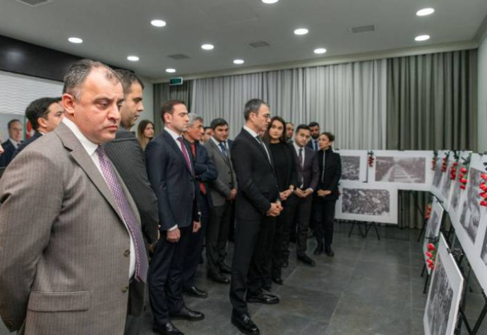 Daha sonra tədbir iştirakçıları həmin hadisələr zamanı çəkilmiş fotolardan hazırlanmış fotosərgi ilə tanış olublar. Sərgidə nümayiş olunan arxiv fotoları barədə sərgi iştirakçılarına ətraflı məlumat verilib, bəzi fotoların geniş auditoriya üçün ilk dəfə nümayiş olunduğu diqqətə çatdırılıb.
