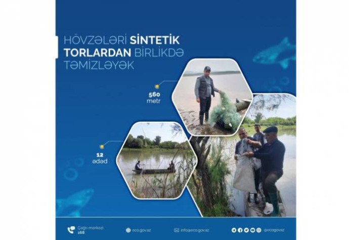 Aksiya zamanı həmin su hövzələrindən 560 metr uzunluğunda 12 ədəd sintetik tor götürülüb.