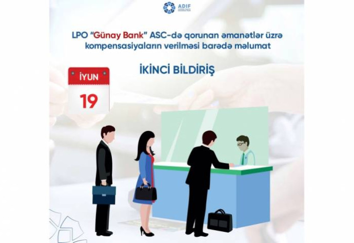 “Günay Bank” ASC-də qorunan əmanətlər üzrə kompensasiyaların verilməsi barədə məlumat