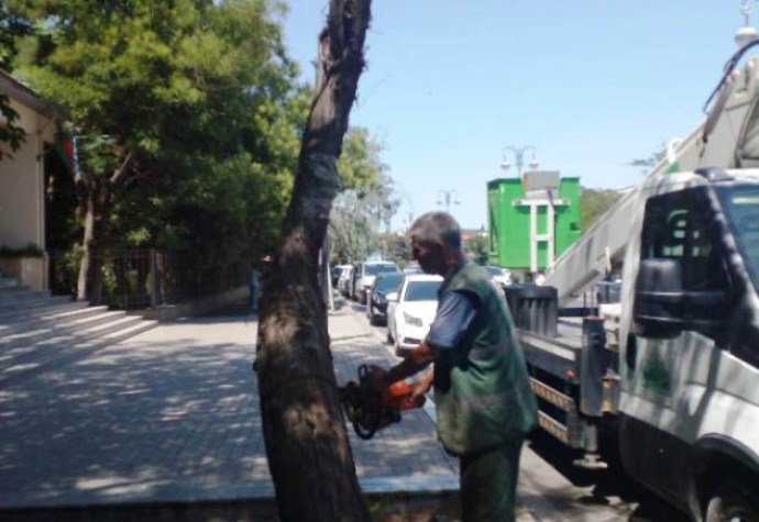 Bakıda qurumuş və qəzalı ağacların götürülməsi işləri aparılır