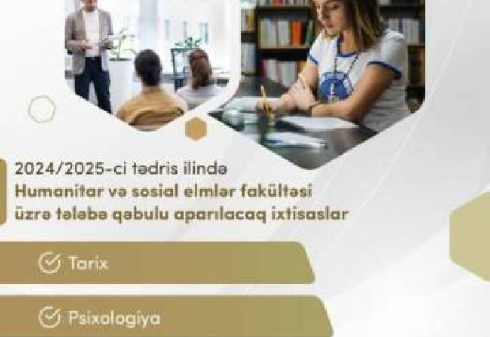 Bu barədə universitetdən məlumat verilib. Bildirilib ki, Humanitar və sosial elmlər fakültəsi üzrə tələbə qəbulu tarix, psixologiya, hüquqşünaslıq, beynəlxalq münasibətlər ixtisasları üzrə aparılacaq.