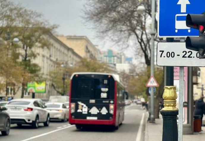 Bakıda daha bir ərazidə avtobus zolağı ilə bağlı yol nişanı quraşdırılıb
