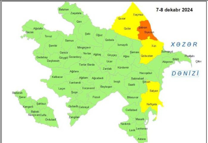 Milli Hidrometeorologiya Xidməti dekabrın 7-si axşam və 8-i bəzi bölgələrdə gözlənilən küləkli hava şəraiti ilə bağlı sarı və narıncı xəbərdarlıq verib.