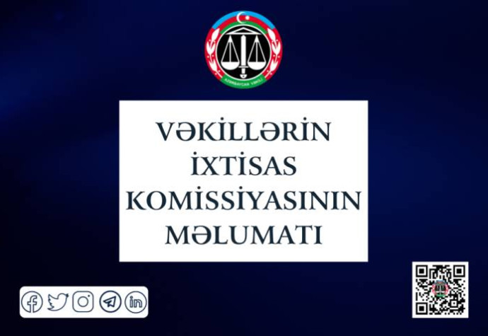 İmtahanların nəticələrinə görə, Vəkillərin İxtisas Komissiyasının peşə yararlılığına dair rəyini alan 114 nəfər vəkilliyə namizəd icbari təlimə buraxılıb.