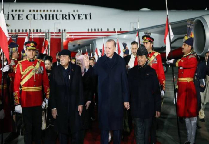 Türkiyə liderini İslamabad aeroportunda Pakistan Prezidenti Asif Ali Zerdari, Baş nazir Şahbaz Şərif və digər rəsmi şəxslər qarşılayıblar.