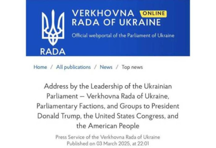 Ukrayna Ali Radası ABŞ Prezidenti Donald Trampa, Konqresə və ABŞ xalqına müraciət edib.