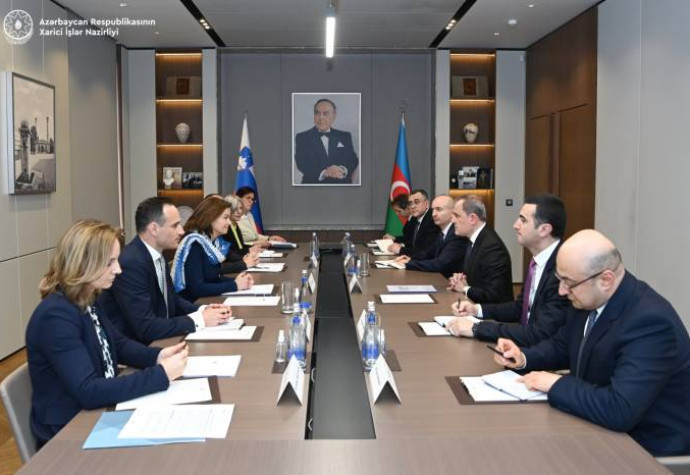 Azərbaycan Respublikasının xarici işlər naziri Ceyhun Bayramovun Sloveniyanın xarici işlər naziri Tanya Fayon ilə geniş tərkibdə görüşü keçirilib.