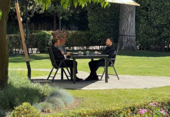 "Volodimir Zelenski və Emmanuel Makron təkbətək görüşürlər. Onlar gələcək sülh səylərini müzakirə edirlər", - paylaşımda qeyd edilib.